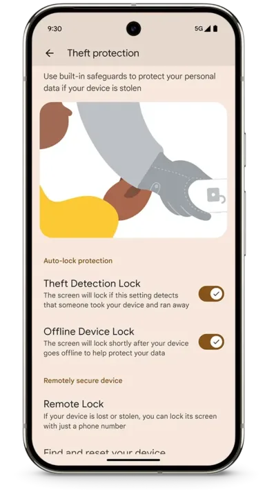- Protection antivol (Theft Protection) : détection de vol par l’IA, verrouillage à distance et espace privé sécurisé pour les applications sensibles (Android 15 requis).
