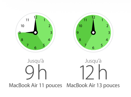 Avec ce nouveau processeur, l’autonomie de la batterie pour le MacBook Air de 15 pouces va passer de cinq heures à neuf heures, alors que le 13 pouces passera quant-à lui de sept heures à douze heures. Le MBA profite, puce Haswell oblige, du coeur graphique Intel qui offrira des performances graphiques 40% plus rapides que son prédécesseur.