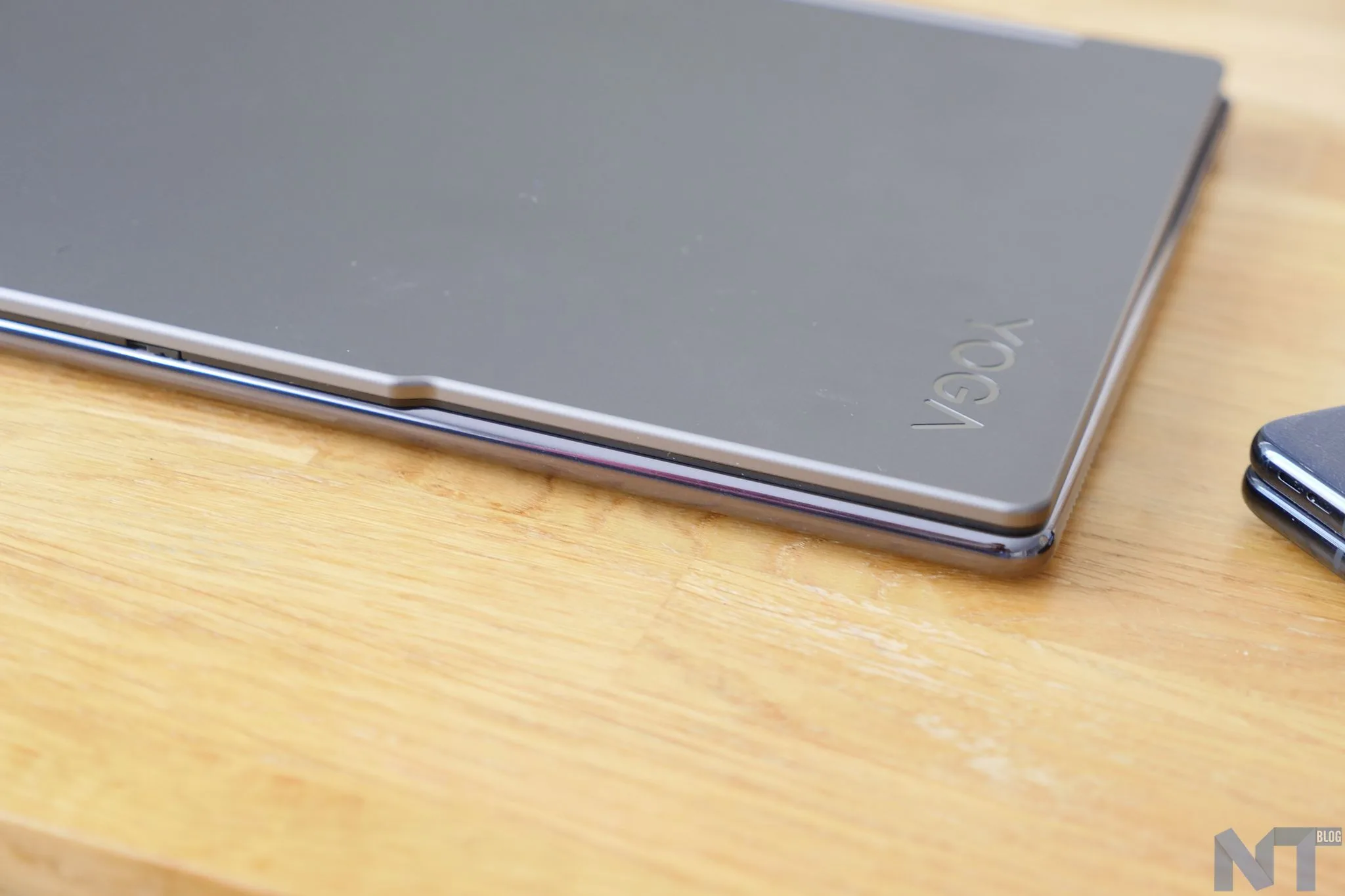 Le Lenovo Yoga 9i (2024) conserve le design en aluminium qui a fait sa renommée, avec un poids de moins de 1,36 kg, ce qui le rend ultra-portable. Cependant, Lenovo a apporté quelques modifications cette année : si la base conserve sa structure emblématique, le couvercle est désormais légèrement plus petit que la base, un choix inhabituel qui confère une esthétique unique.