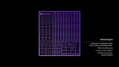 L’évolution du M4 Max est moins marquante en termes de nombre de cœurs GPU (32 à 40 cœurs selon le modèle), mais elle surpasse ses prédécesseurs avec une bande passante mémoire améliorée et une capacité de RAM plus élevée, jusqu’à 128 Go. Cela devrait en théorie offrir des gains notables en performance graphique, bien que des tests réels seront nécessaires pour quantifier ces progrès.