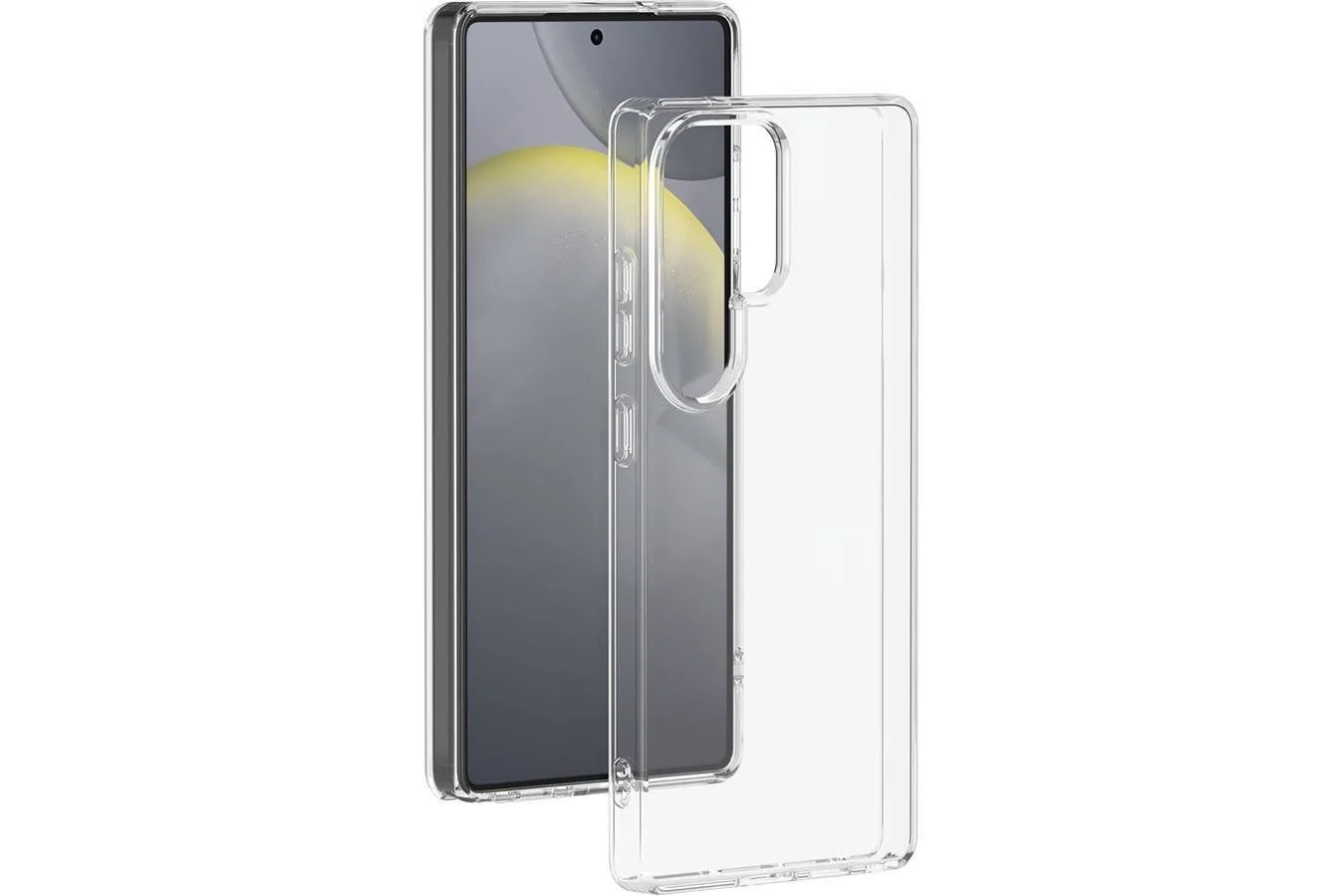 Le modèle Galaxy S25 Ultra présente une découpe plus large sur sa coque de protection pour accueillir quatre capteurs de caméra, marquant une continuité avec les configurations photo robustes des précédents modèles Ultra. Les coins arrondis suggèrent un design adouci, tandis que les rendus de l’écran montrent des bordures plus fines, offrant ainsi un look épuré.