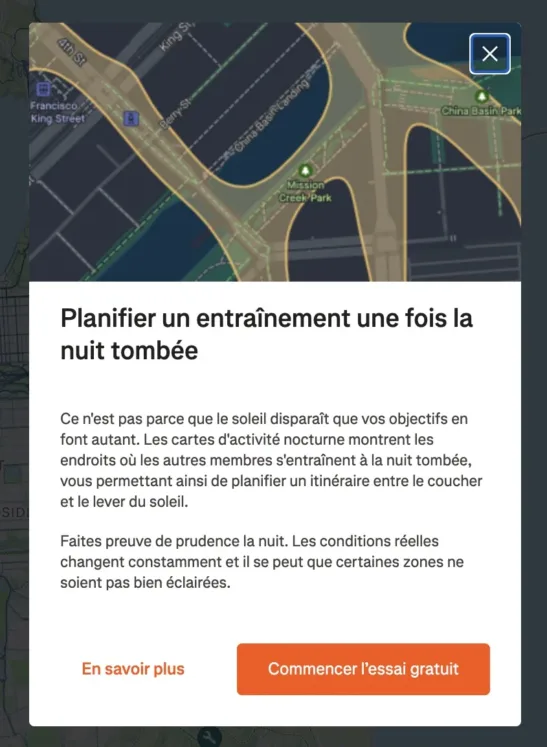 Les nouvelles cartes d’activité, Nuit et Hebdomadaire, sont pensées pour aider les utilisateurs à choisir leurs itinéraires de manière plus éclairée durant l’hiver, surtout le soir après la tombée de la nuit ou tôt le matin. La carte d’activité Nuit affiche les activités enregistrées entre le coucher et le lever du soleil, permettant ainsi d’identifier les endroits populaires où il y a plus de monde, offrant un cadre potentiellement plus sécurisant pour s’entraîner dans l’obscurité.