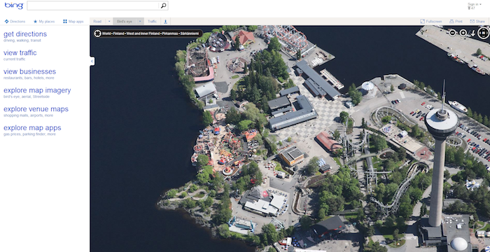 Google et Apple ne sont pas les seules sociétés sur le front avec une fonction de “survol” dans leur application de géolocalisation. Microsoft vient de rapidement mettre à jour son service Bing Maps avec des téraoctets de “Bird’s Eyes Views”, ou autrement dit les vues aériennes obliques à 45°, au cours des dernières années.