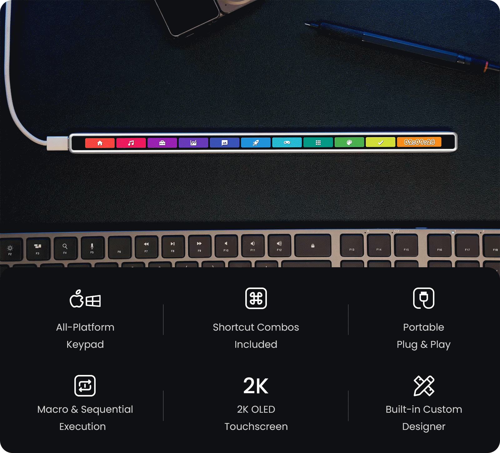 Créée par la startup Eniac, la Flexbar se positionne comme une réinvention de la Touch Bar, désormais abandonnée par Apple. Cette barre tactile peut être placée au-dessus du clavier de votre ordinateur portable, sur votre bureau, ou encore à côté de votre tablette. Contrairement à la version d’Apple, Eniac met l’accent sur une grande personnalisation, permettant aux utilisateurs de configurer des macros et raccourcis adaptés à leurs besoins.