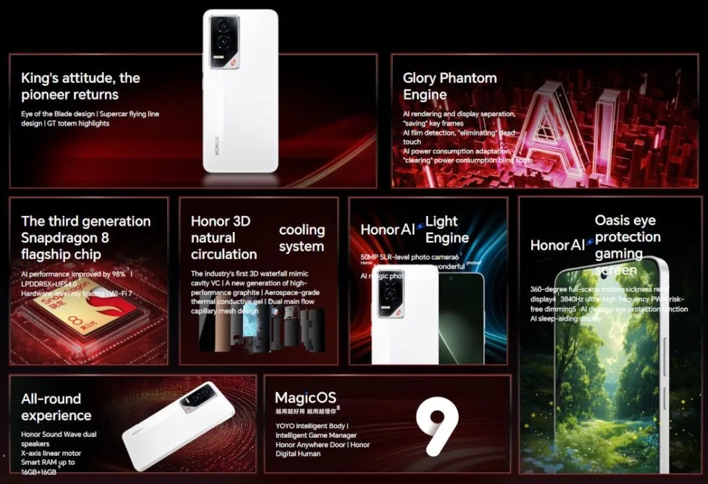 Performances et spécifications impressionnantes du Honor GT