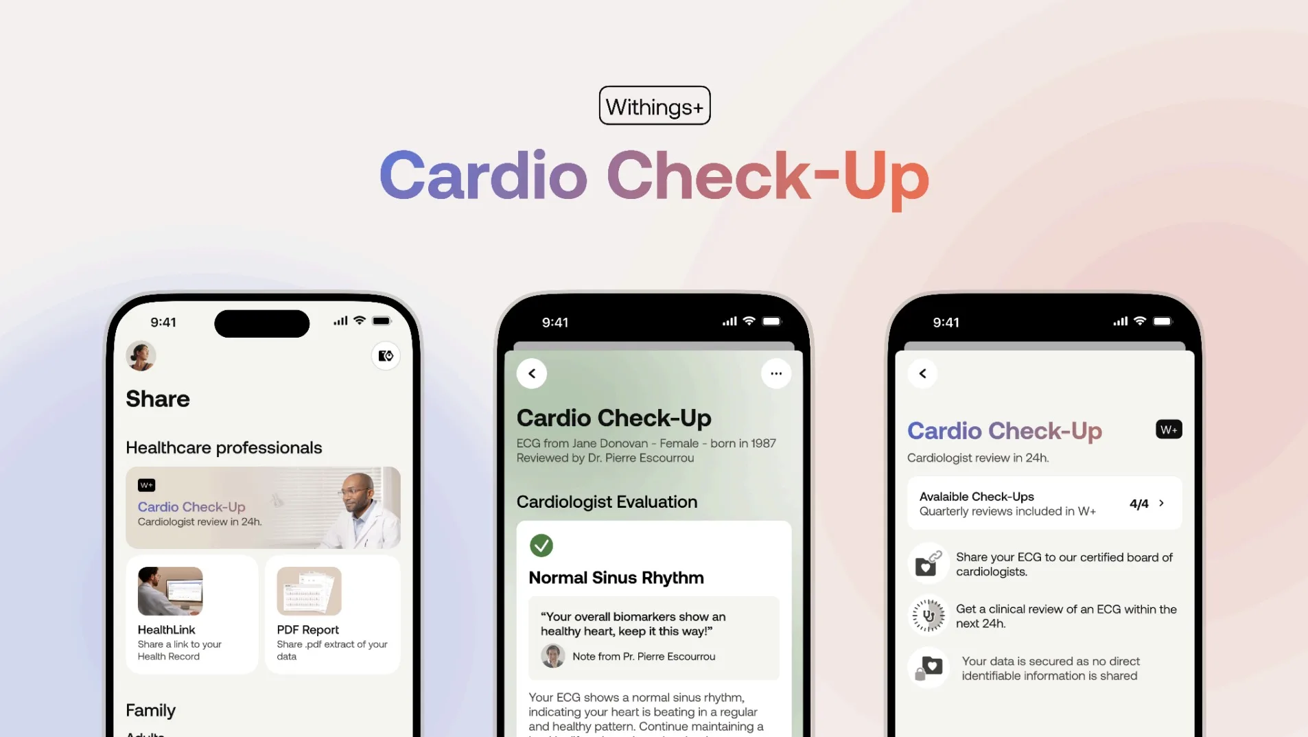 Le nouveau service Cardio Check-Up, intégré à l’abonnement Withings+, permet aux utilisateurs de consulter un cardiologue sans quitter leur domicile.