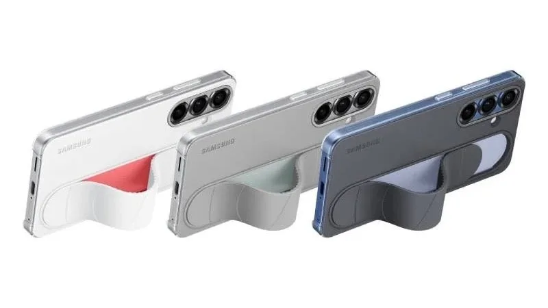 - Coques texturées avec support intégré : Conçues pour offrir une meilleure prise en main et un usage pratique, ces coques sont disponibles pour les Galaxy S25+ et S25 Ultra. Elles devraient également être proposées pour le modèle standard. Les coloris disponibles incluent des teintes plus classiques : gris, blanc et noir.