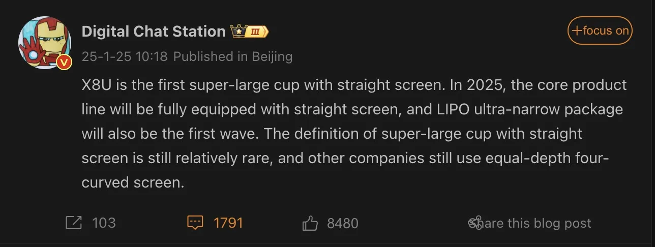 Selon le célèbre Digital Chat Station, le Find X8 Ultra abandonnera l’écran incurvé, qui a longtemps caractérisé la série Find X, au profit d’un écran plat. Ce choix pourrait séduire de nombreux utilisateurs qui préfèrent une prise en main plus classique et veulent éviter les problèmes de touches accidentelles, fréquents avec les écrans incurvés.