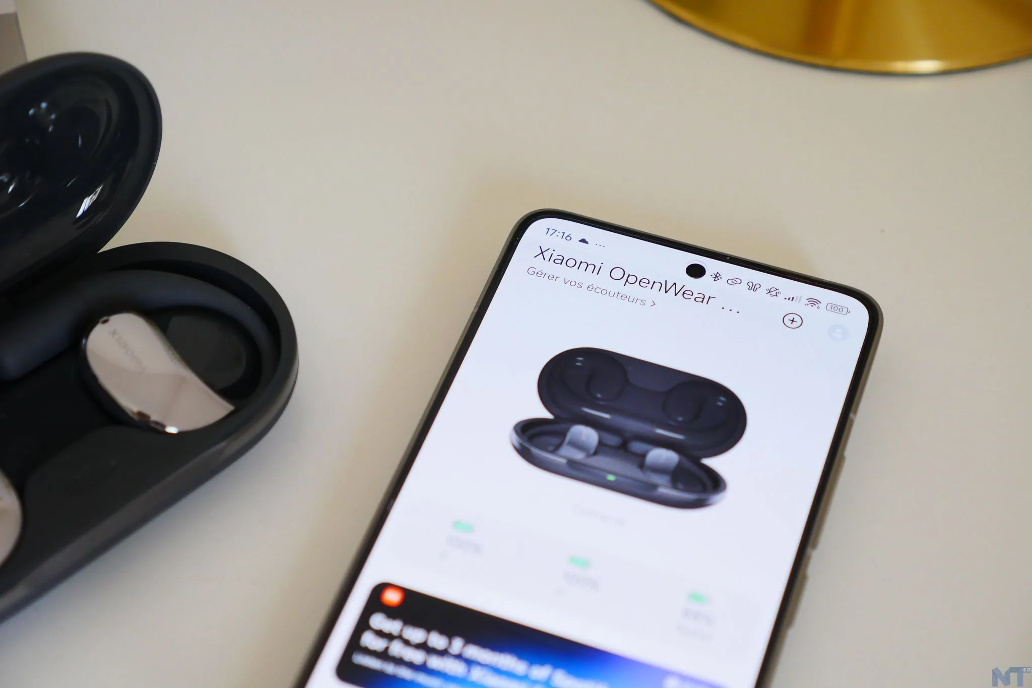 Les OpenWear Stereo sont accompagnés de l’application Xiaomi Earbuds, qui permet de personnaliser certaines commandes et d’accéder à des fonctionnalités comme l’appairage double ou le contrôle à distance de l’appareil photo sur les smartphones Xiaomi. Bien que ces options soient utiles, l’absence d’un égaliseur complet ou de fonctions avancées, telles que la détection de port ou l’audio 3D, limite l’expérience utilisateur.