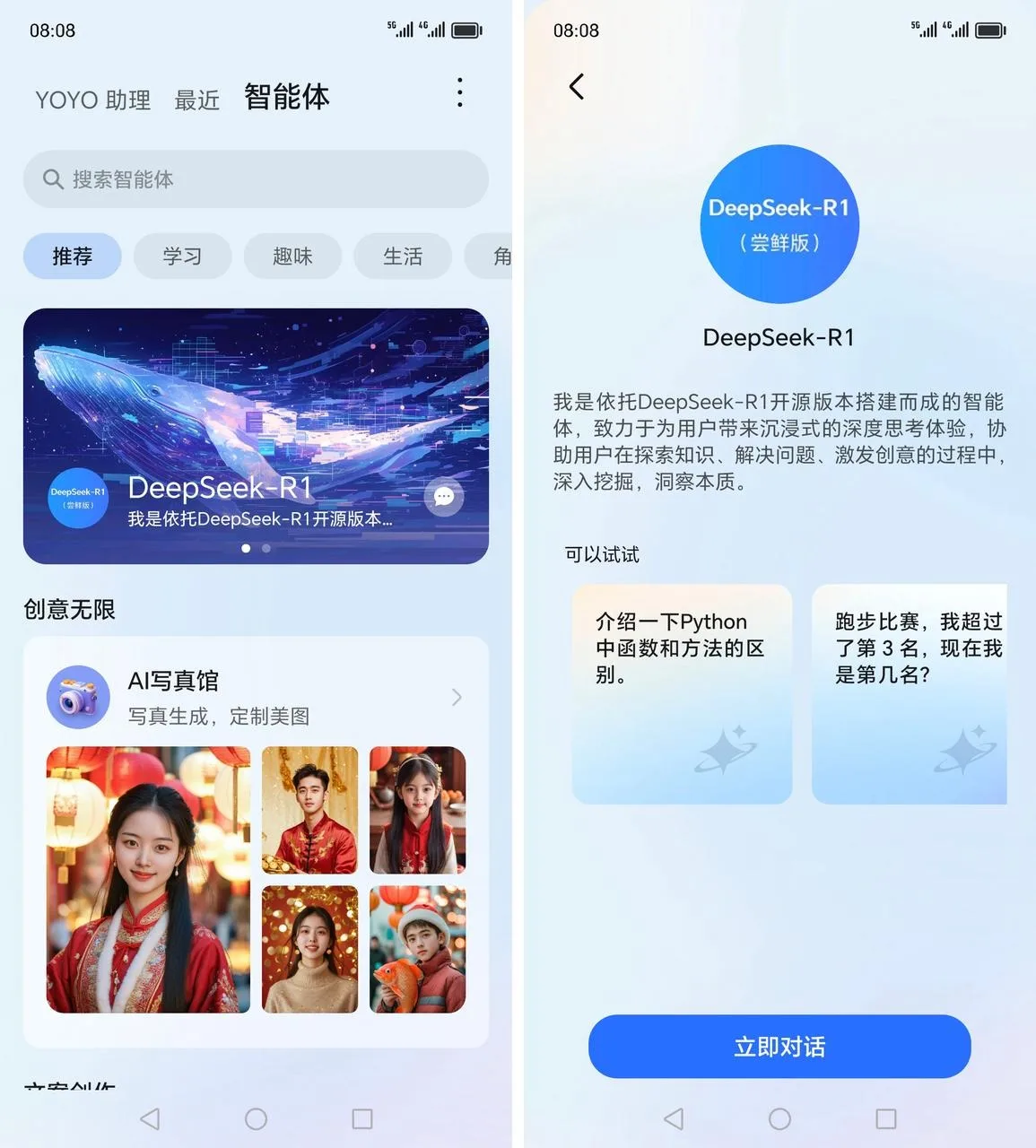 L’approche de l’entreprise est axée sur une interaction fluide. Les utilisateurs en Chine peuvent utiliser la version mise à jour de YOYO en accédant à la section “Agent IA” en balayant l’écran vers le haut depuis le bas de leur appareil, puis en sélectionnant “DeepSeek-R1”.