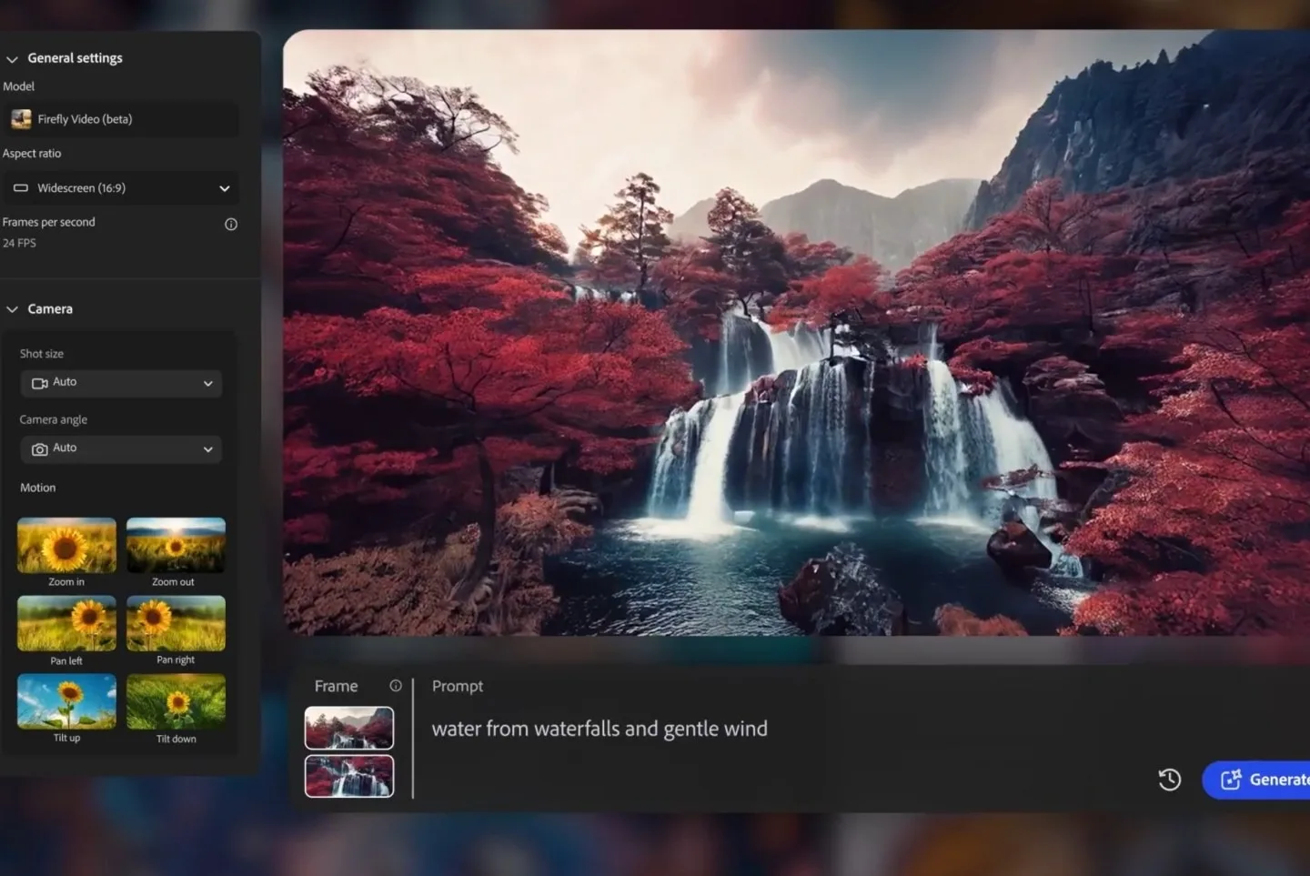 Firefly video se compose de deux fonctionnalités principales : Text-to-video et Image-to-video. Comme leurs noms l’indiquent, Text-to-video permet de générer des vidéos à partir de descriptions textuelles, tandis que Image-to-video utilise une image de référence en plus du texte pour guider la création de la vidéo.