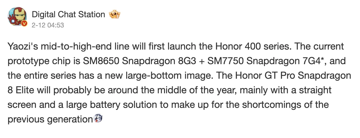 En plus de la série Honor 400, la marque travaille sur un modèle GT Pro, qui devrait être dévoilé mi 2025.