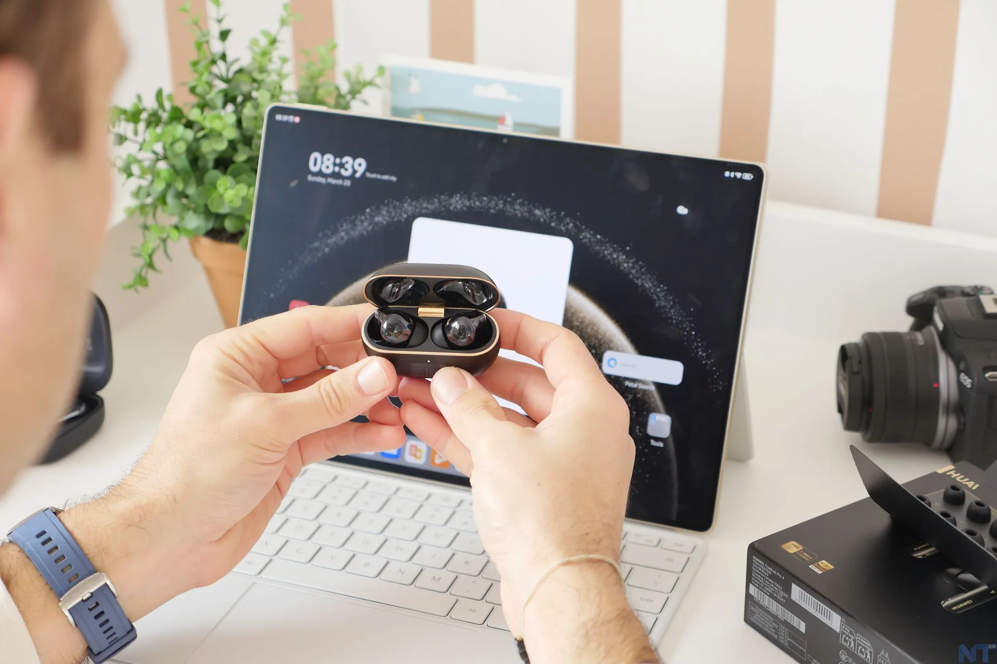 L’étui des Huawei FreeBuds Pro 4 et les écouteurs eux-mêmes ont un design plutôt exquis, presque luxueux. J’ai reçu le modèle noir et or, qui est particulièrement élégant. L’étui s’ouvre et se ferme avec un claquement rassurant, tandis que l’ensemble du produit a un poids agréable, ce qui renforce encore l’impression d’un produit haut de gamme.