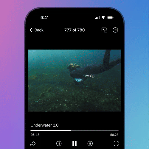 Les vidéos sauvegardent désormais automatiquement votre progression, vous permettant de mettre en pause et de reprendre la lecture là où vous l’avez laissée.