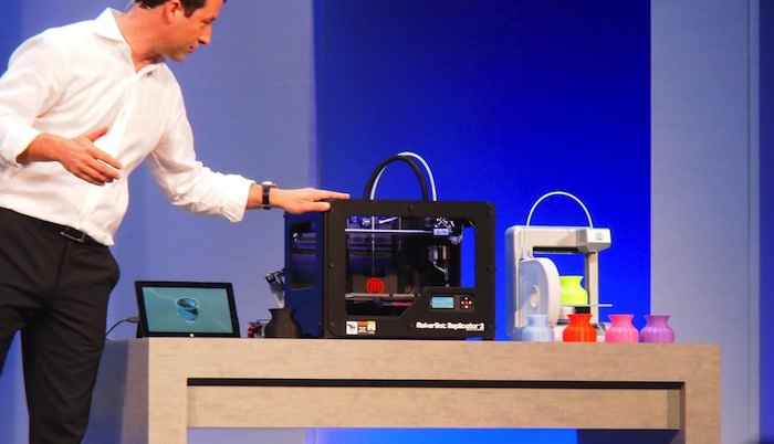 Windows 8.1 permettra aux développeurs de disposer des capacités de l’impression 3D dans leurs applications. Leblond a poursuivi avec la démonstration d’un programme qui permet aux utilisateurs de façonner un objet 3D et d’imprimer ce dernier à un MakerBot Replicator 2. Après avoir montré l’utilisation de l’application, et une mini vidéo durant le processus d’impression, il est ressorti avec une version pré-imprimée de l’objet.