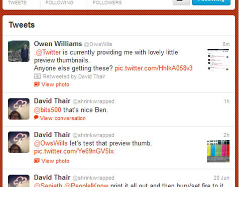 En effet, ces derniers ont remarqué que Twitter montre de petites vignettes de prévisualisation sur la droite des tweets dans le flux.