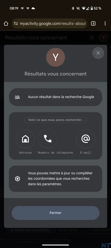 Une fois sur cet outil, vous pouvez entrer vos informations personnelles, comme votre nom, adresse, numéro de téléphone ou e-mail. Google surveillera ensuite automatiquement l’apparition de ces données dans ses résultats de recherche et vous enverra une notification lorsqu’une nouvelle mention est trouvée.