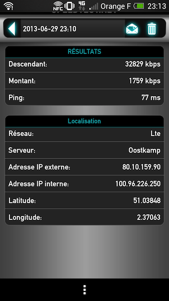 Le réseau 4G de Orange m’a permis de disposer d’un taux de téléchargement très rapide, que ce soit en descendant (31 000 kbps) et en montant (4 700 kbps), en moyenne. Les autres connectivités sans fil comprennent le Wi-Fi a/ac/b/g/n, le Bluetooth 4.0, le DLNA, le NFC et un port infrarouge pour contrôler les téléviseurs via l’application TV HTC. Bien qu’il n’y ait qu’un seul port, le Micro USB est compatible MHL, ce qui signifie qu’il est possible de sortie vidéo avec le droit fil ou un dongle.