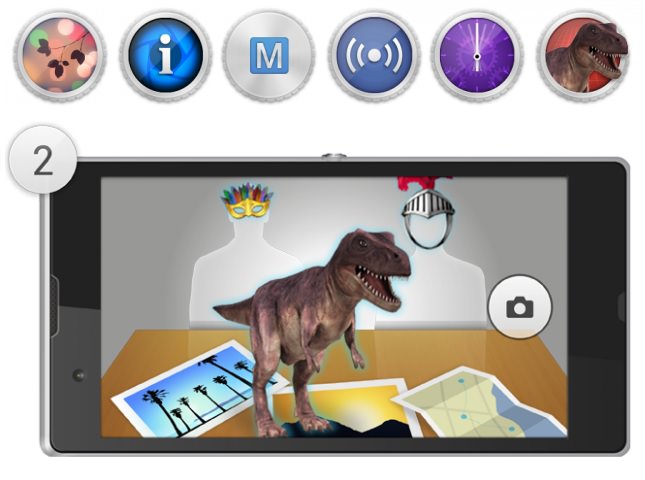 Comme vous pouvez le voir ci-dessus, l’appareil pourrait offrir quelque chose de nouveau : la réalité augmentée. Ce dinosaure n’est autre que l’un des nombreux modes de la réalité augmentée, qui peuvent être activés à l’aide de la caméra.