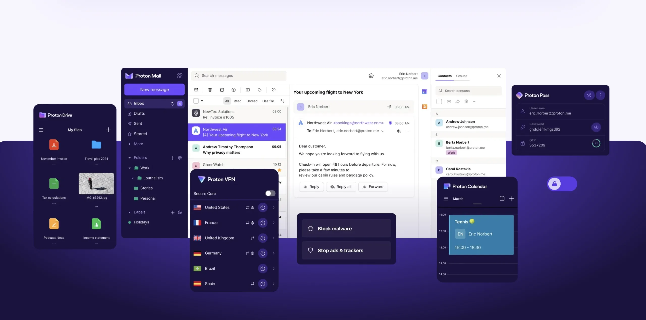 - Google Agenda : Proton Agenda peut importer vos événements depuis Gmail, mais certaines intégrations avancées (comme Google Meet) ne seront plus disponibles.