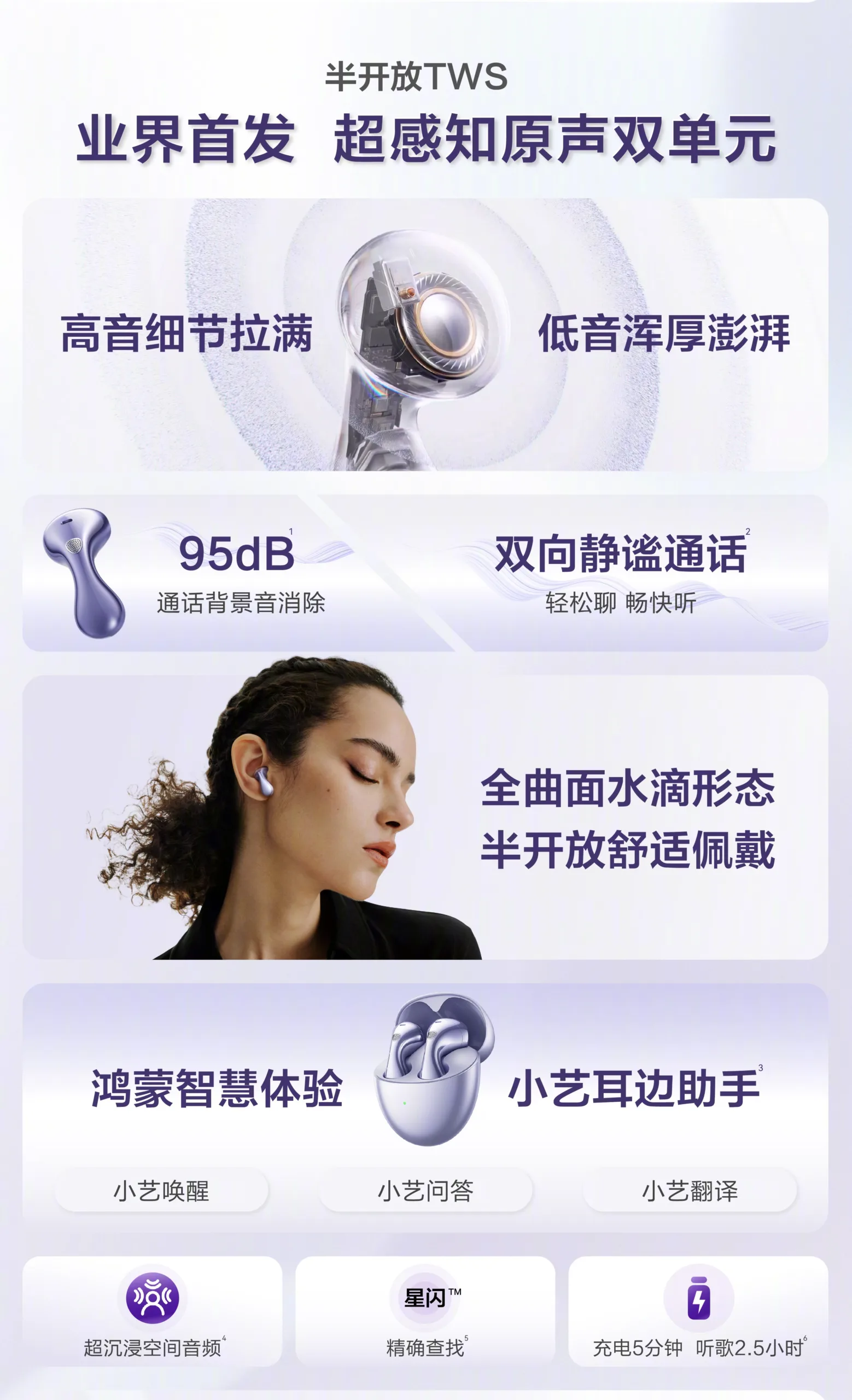 Huawei a également intégré un système d’optimisation audio en temps réel, qui ajuste automatiquement le son en fonction de la forme de l’oreille, de la position de port et du volume d’écoute. Grâce à cette innovation, chaque utilisateur bénéficie d’une restitution sonore personnalisée et fidèle à l’original.