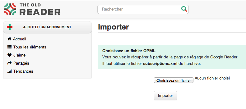 Autrement dit, pour utiliser les archives de Google Takeout et transférer vos abonnements à un nouveau service, tout ce que vous devez faire est de garder le fichier subscriptions.xml à portée de main et de le transférer vers les nouveaux services qui demandent soit un fichier XML ou OPML. Pour les lecteurs qui ont facilité le processus d’import par une connexion directe à Google Reader, tout ce que vous devez faire est de s’inscrire, de cliquez sur le bouton Importer, et de fournir les autorisations nécessaires.
