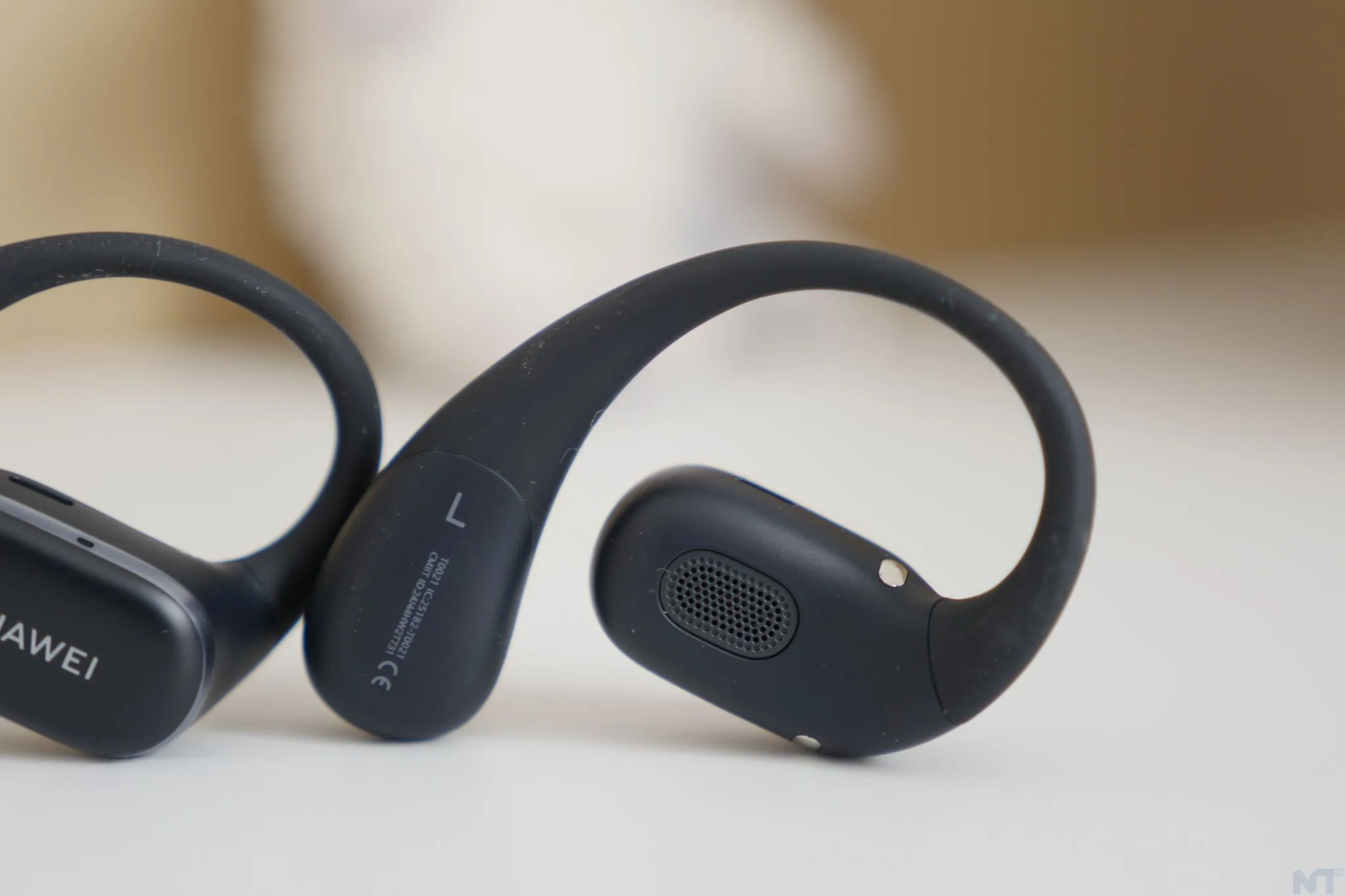 Les FreeArc intègrent un haut-parleur de 17×12 mm, bien plus grand que ceux des écouteurs classiques, qui oscillent généralement entre 10 et 11 mm. Ce choix permet d’obtenir un son plus puissant et plus immersif. Huawei a également intégré des aimants en néodyme fer bore ainsi qu’un diaphragme en titane, des composants habituellement réservés aux casques haut de gamme.