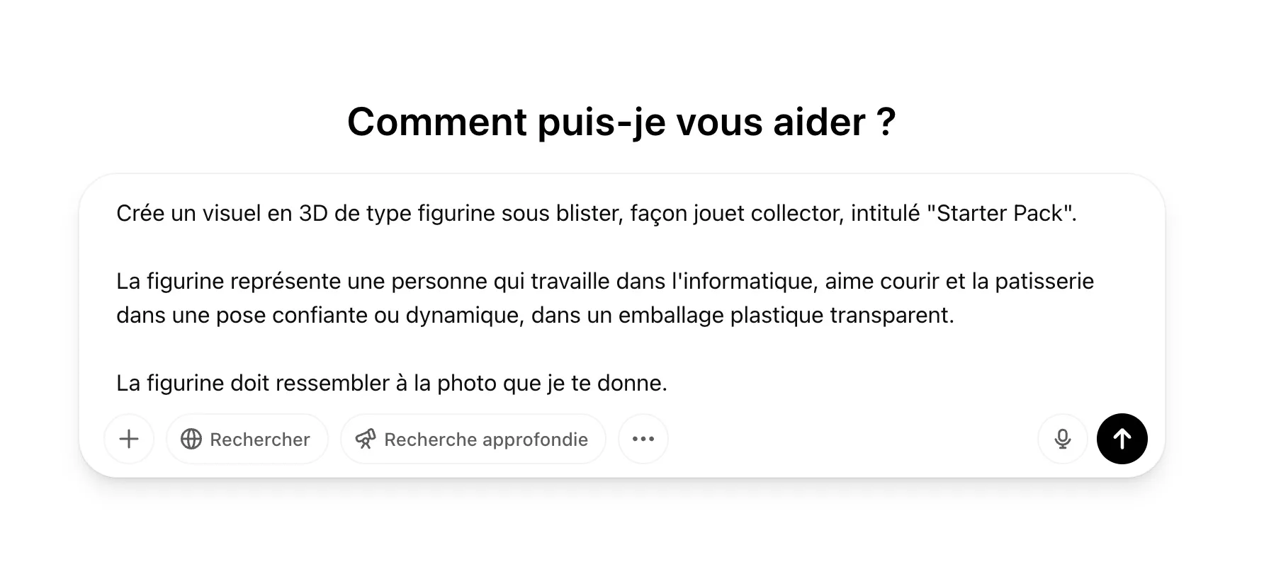 Vous avez sûrement vu passer ces visuels sur les réseaux sociaux : une figurine en style cartoon, enfermée dans une boîte en plastique à la manière des jouets rétro, accompagnée d’accessoires emblématiques… le tout à votre image ! Cette nouvelle tendance baptisée « Starter Pack » de ChatGPT cartonne actuellement sur TikTok, Instagram, Facebook… et même LinkedIn.