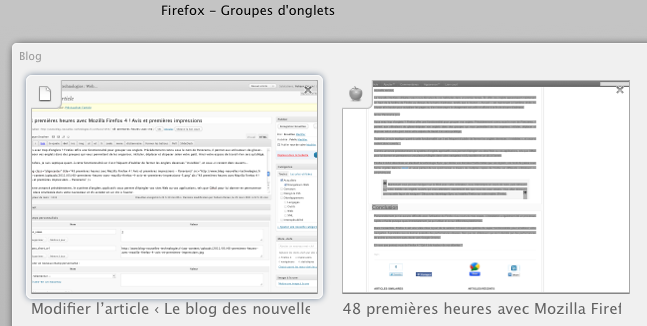 Vous avez trop d’onglets ? Firefox offre une fonctionnalité pour grouper vos onglets. Précédemment connu sous le nom de Panorama, il permet aux utilisateurs de glisser-déposer vos onglets dans des groupes qui vous offrent la possibilité de les organiser, intituler, déplacer et disposer selon votre goût. Ainsi votre espace de travail n’en sera qu’allégé.