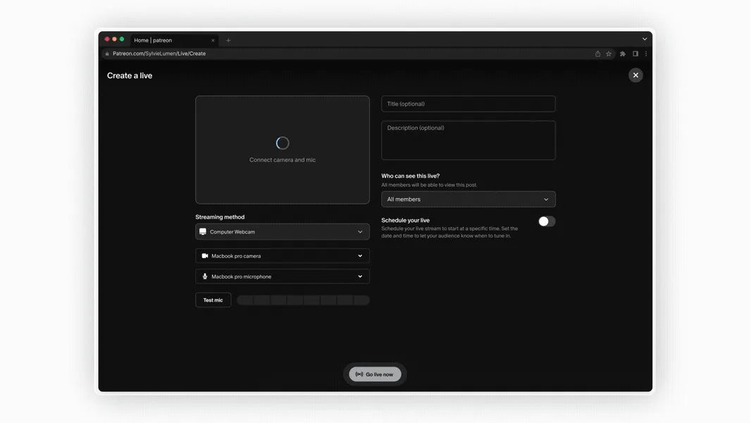 Contrairement à TikTok Live (limité à 60 minutes), Twitch (limite de 48h) ou YouTube (limité à 10 diffusions par jour), Patreon ne fixe aucune limite de temps par live, ce qui donne une liberté totale aux créateurs.