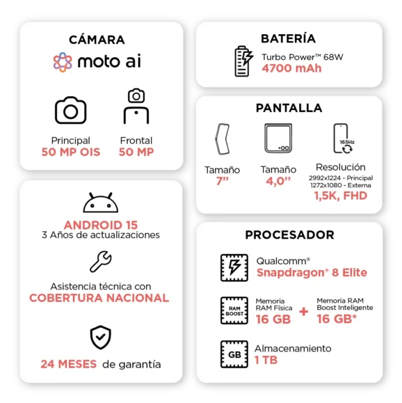 L’écran secondaire, situé sur la coque externe, mesure 4 pouces et bénéficie également de la technologie LTPO AMOLED, avec une fréquence de 165 Hz, le HDR10+, une profondeur de couleur de 10 bits, une couverture de 100 % DCI-P3 et une luminosité maximale de 3 000 nits.