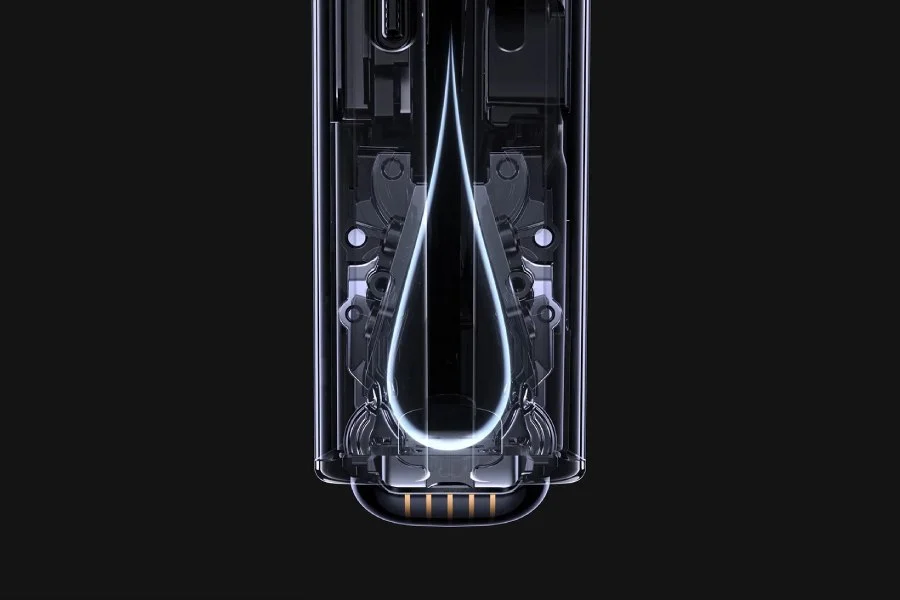 Côté finitions, l’appareil joue la carte du luxe. Il est proposé en trois coloris : Forged Shadow Black, Sky White, et Cloud Blue, avec une coque en cuir et des accents haut de gamme sur la version noire (“Black Gold Waistline”). Son poids est contenu à 1,16 kg pour une épaisseur de seulement 7,3 mm en mode ouvert.