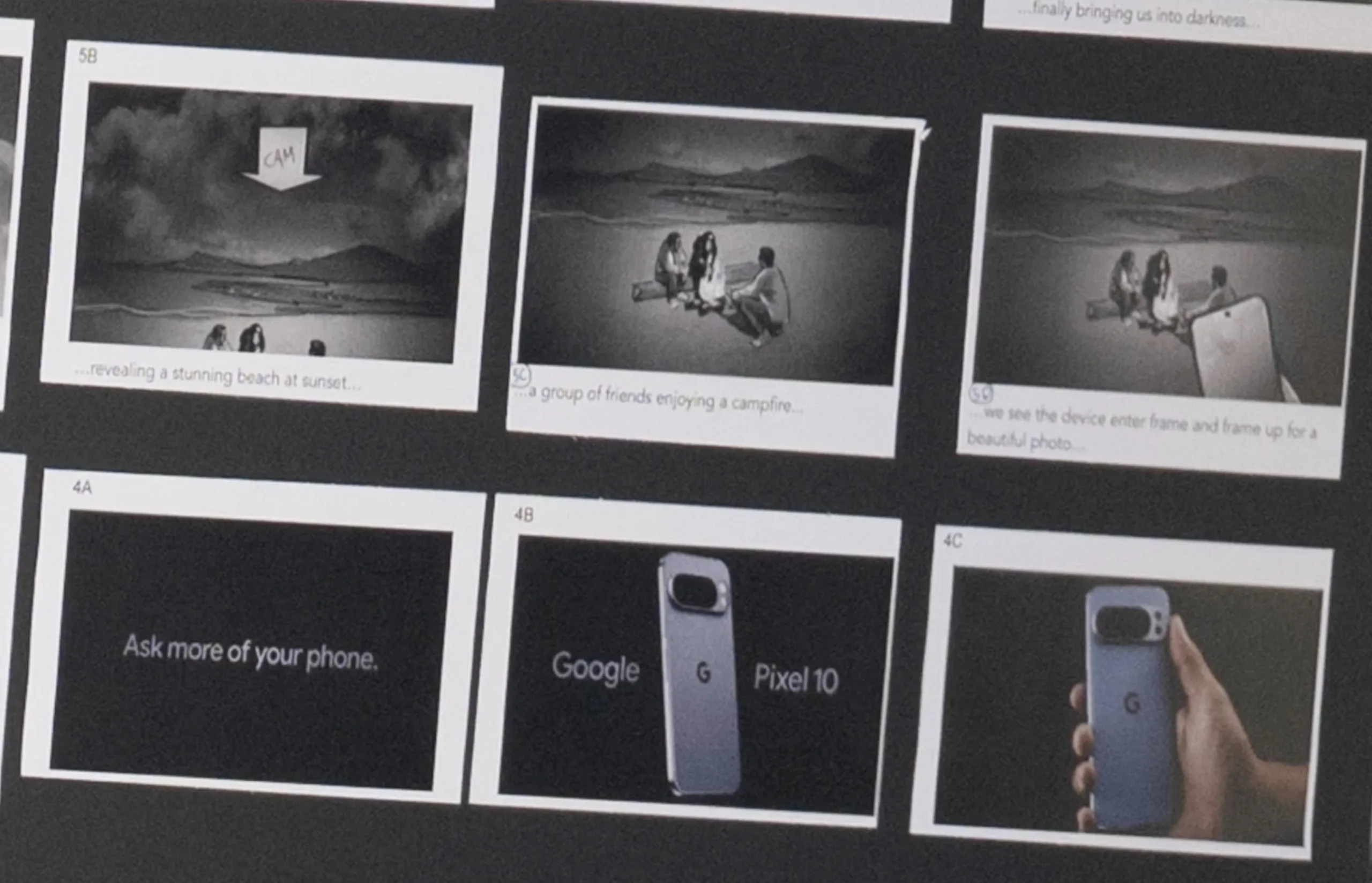 Un slogan présent sur les storyboards laisse déjà entrevoir la stratégie marketing de Google pour son prochain flagship : « Ask more of your phone » — littéralement : « Demandez plus à votre téléphone ».