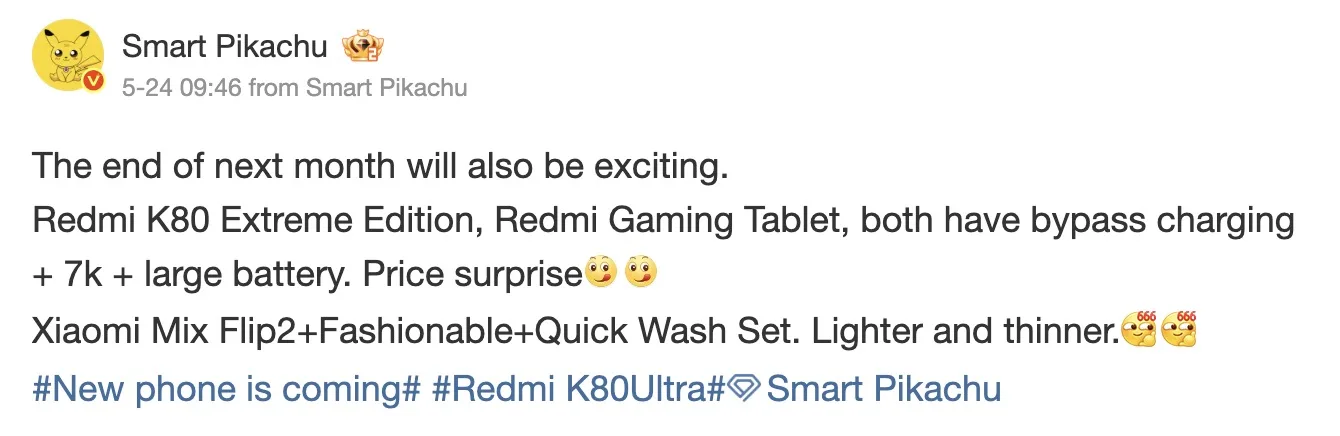 Xiaomi prépare un été électrique : la marque s’apprête à lancer trois nouveaux appareils d’ici fin juin en Chine, selon des fuites récentes. On parle ici du très attendu Xiaomi Mix Flip 2, du Redmi K80 Ultra, et d’une tablette gaming Redmi.