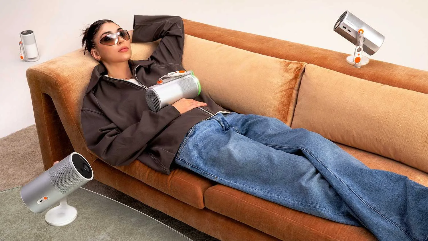 Les deux modèles conservent le design cylindrique façon bouteille métallique (bien qu’en plastique) et intègrent désormais une base rotative à 360°. Autre subtilité : une lumière d’ambiance est ajoutée à la base, et peut même suivre le rythme de la musique si l’appareil est utilisé comme enceinte Bluetooth.