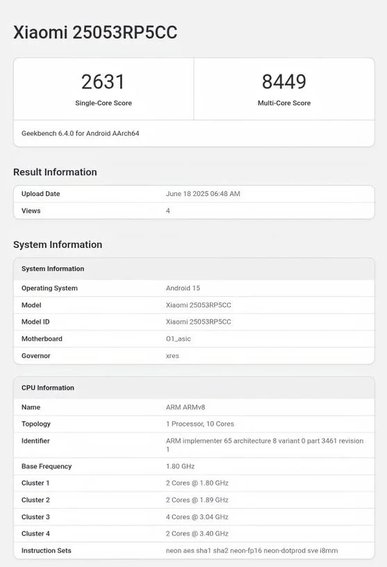 Repérée sous le numéro de modèle 25053RP5CC, la Xiaomi Pad 7S Pro est propulsée par le processeur Xring O1, gravé en 3 nm par TSMC. Cette puce maison intègre un total de 10 cœurs, avec deux cœurs cadencés à 3,40 GHz, quatre à 3,04 GHz, et des cœurs secondaires à 1,89 et 1,80 GHz.