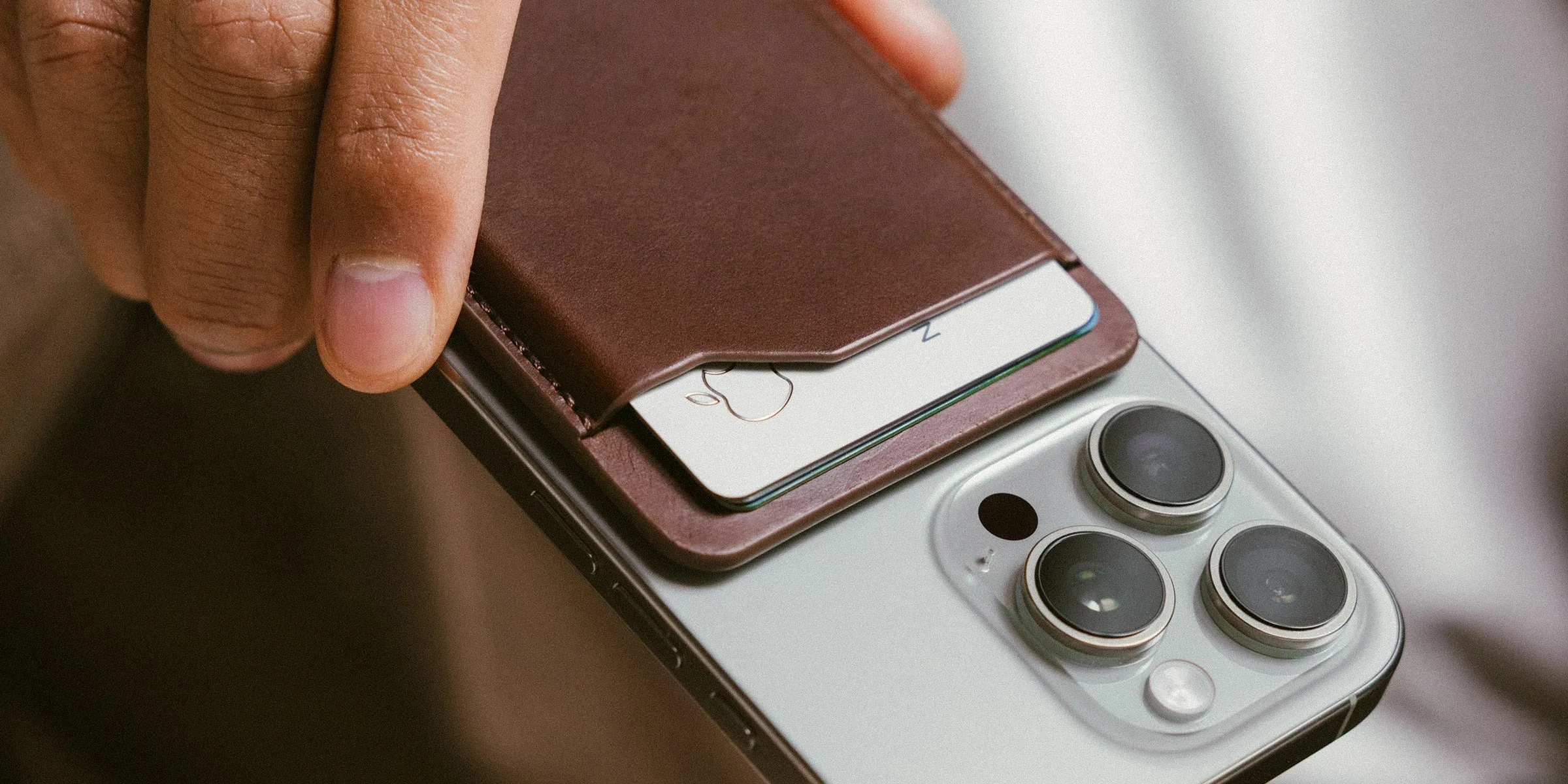 Le Leather Mag Wallet adhère sur n’importe quel iPhone ou coque MagSafe grâce aux aimants intégrés. Cette connexion, fiable mais amovible, permet de sécuriser son portefeuille quand on est plus confiant dans le rangement du téléphone que dans celui du porte-carte.