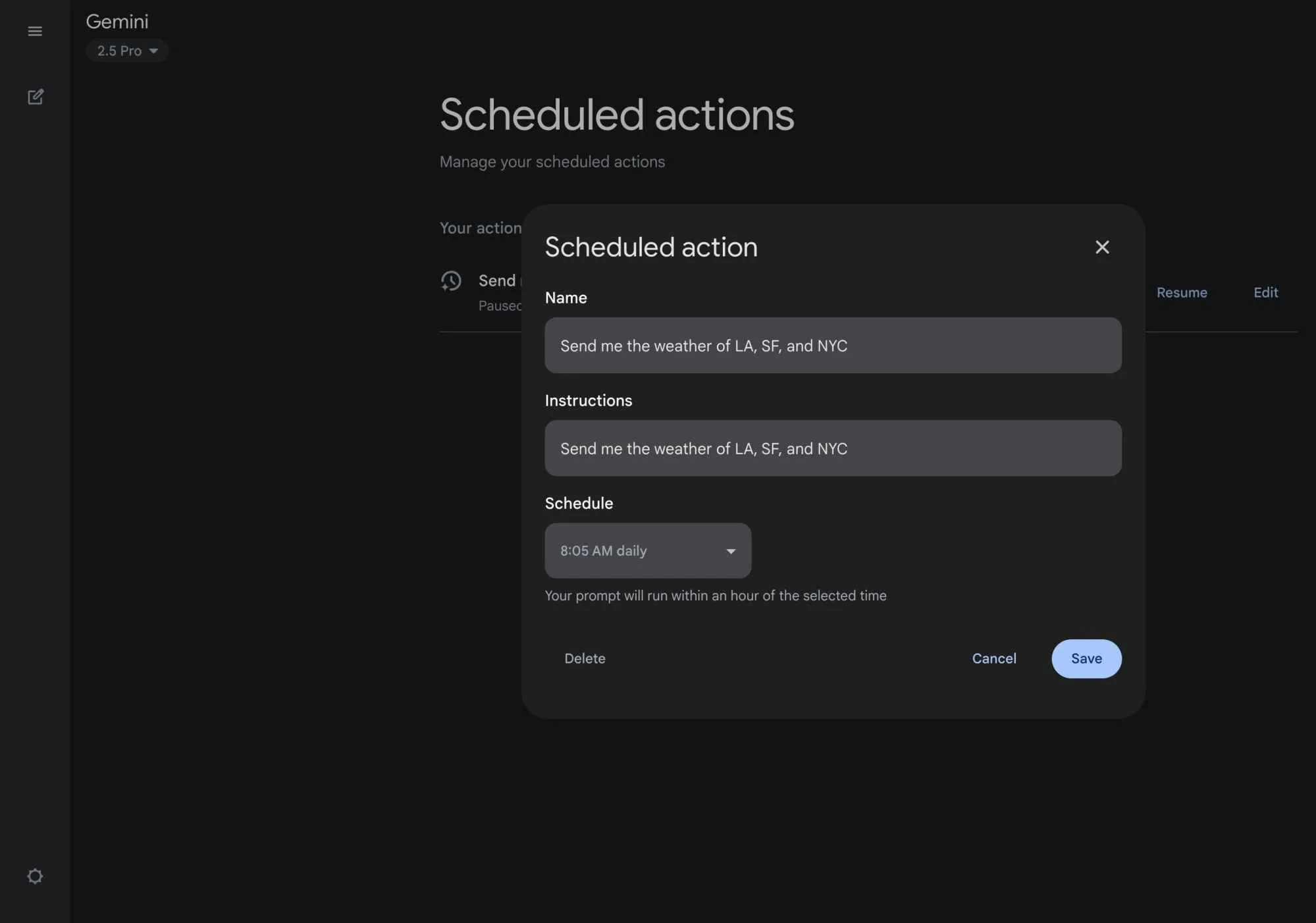 Le prompt sera exécuté dans l’heure suivant l’horaire défini, selon les précisions de Google.