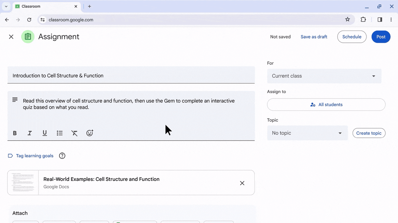 Autre nouveauté phare : les enseignants pourront créer des « Gems », des agents IA sur mesure, basés sur leur programme, à partager avec les élèves pour un soutien individualisé. Ces Gems pourront aussi être distribués à d’autres enseignants ou administrateurs via Google Classroom, Schoology Learning ou Canvas.