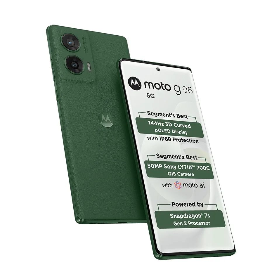 Sous le capot, le Moto G96 est propulsé par la puce Snapdragon 7 s Gen 2 de Qualcomm, un SoC en 4 nm qui allie efficacité énergétique et bonnes performances pour les jeux et le multitâche. Il est accompagné de 8 Go de RAM (extensible virtuellement à 16 Go), et 128 ou 256 Go de stockage UFS 2.2.