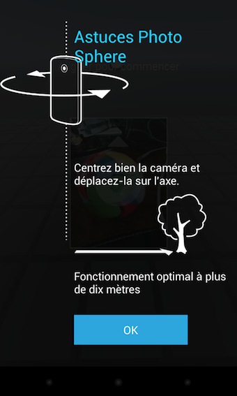 Pour les utilisateurs de Android 4.0 et 4.1, cela signifie tout simplement que vous allez disposer de Photo Sphere, la fonctionnalité qui permet de faire des panoramas interactifs en 360°. Ainsi, cela signifie que vous allez avoir la possibilité d’utiliser les boutons de volume pour modifier la vitesse d’obturation et un nouveau menu de configuration qui vous permet de basculer entre les différents modes de flash, de choisir la caméra frontale ou arrière, de régler la balance des blancs, ou encore de jouer avec la vitesse d’obturation.