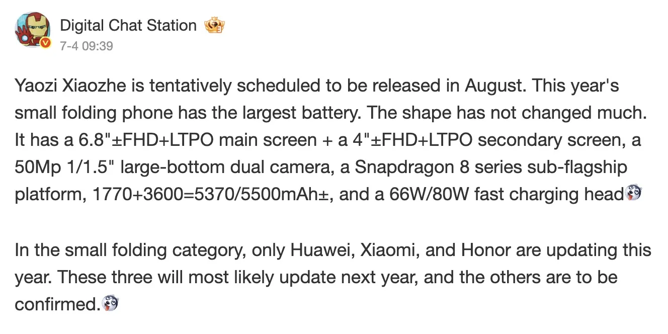 Contrairement au Galaxy Z Flip 7 qui devrait embarquer la puce Snapdragon 8 Elite for Galaxy ou le Exynos 2500 selon les régions, le Magic V Flip 2 se contenterait d’un Snapdragon 8s Gen 4 ou 8 Gen 3 standard. Un choix qui permettrait de maîtriser les coûts tout en garantissant d’excellentes performances, notamment en autonomie et gestion thermique.
