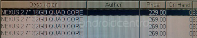 Si les détails sont bien réels, l’image ci-dessous, révélée par Android Central, indique que le nouveau modèle de la Nexus 7 de 16 Go coûtera 229 dollars, tandis que la version 32 Go sera vendue pour 40 dollars de plus, soit 269 dollars. Alors que le détaillant a énuméré les nouveaux modèles de la Nexus 7 en interne, il ne semble pas avoir encore de stock.
