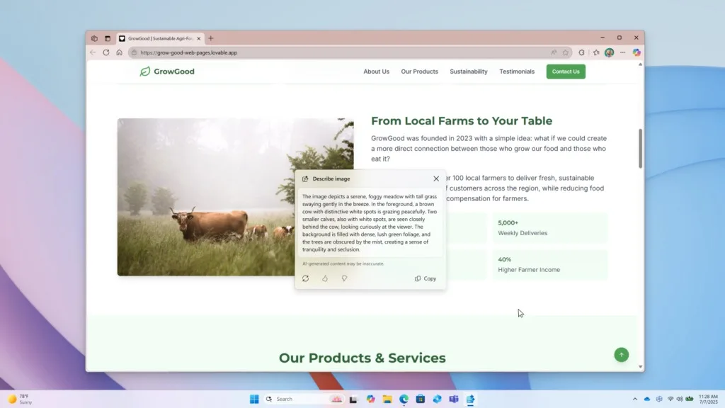 Exemple concret : les journalistes tech utilisent souvent des extensions basées sur GPT pour générer des descriptions d’image. Windows propose désormais cette capacité en natif, sans connexion à Internet ni envoi vers le cloud.