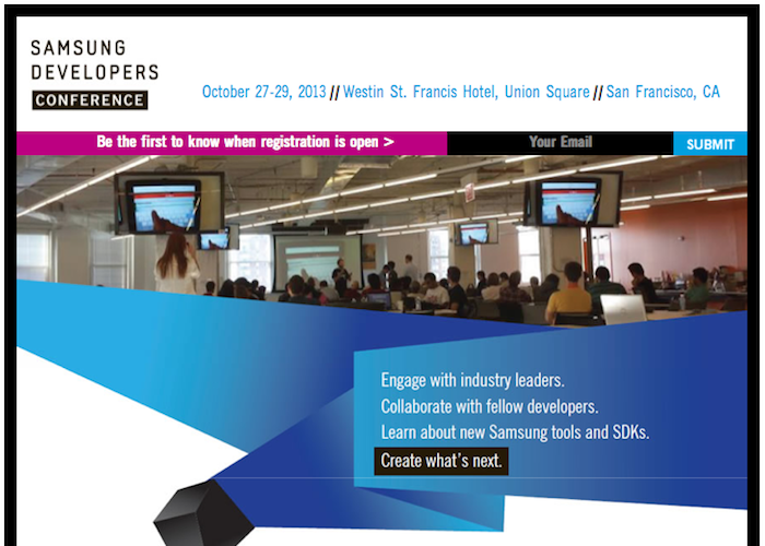 Vous pouvez vous inscrire sur le site de la conférence des développeurs de Samsung pour être prévenu lorsque l’enregistrement sera ouvert si vous êtes intéressé à y participer.
