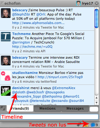 - Firefox : Le plugin Echofon est la référence dans sa catégorie. Cette extension a tout d’un grand client mis à part la gestion des listes. Il vous sera indispensable au jour le jour.
