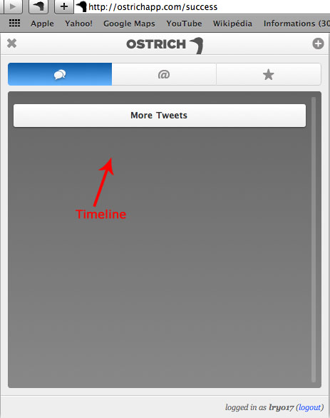 - Safari : Ostrich vous permet de suivre votre timeline, vos mentions et vos tweets favoris de la même manière que les deux précédents