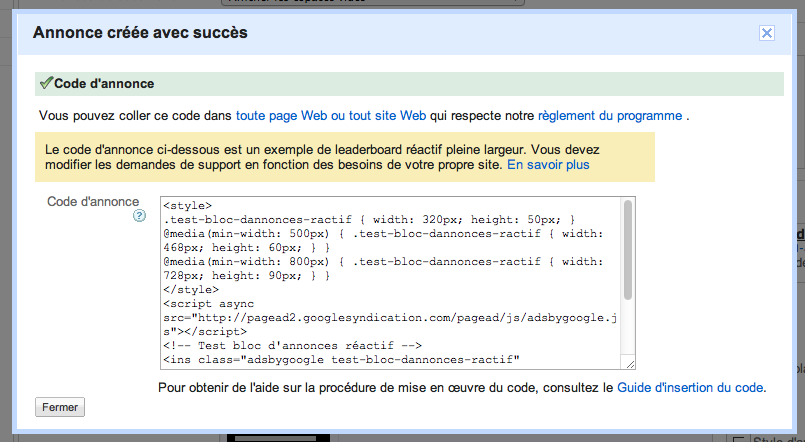 La seule chose que les développeurs ont besoin de s’assurer, c’est que la taille du bloc d’annonces qu’ils précisent pour chaque taille de l’écran corresponde à l’une des tailles d’annonces standard de Google. Donc, contrairement à des ensembles d’annonces standards de Google, vous ne pouvez pas prendre le code, et le copier/coller dans votre site.
