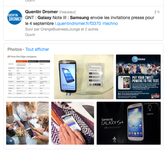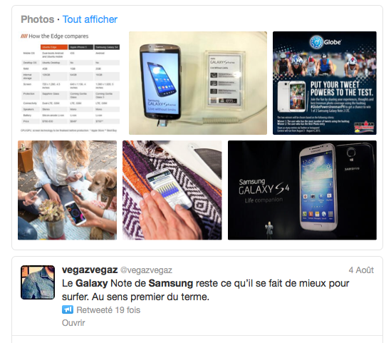 En dessous de la zone des photos, le flux reprend avec le top tweets.