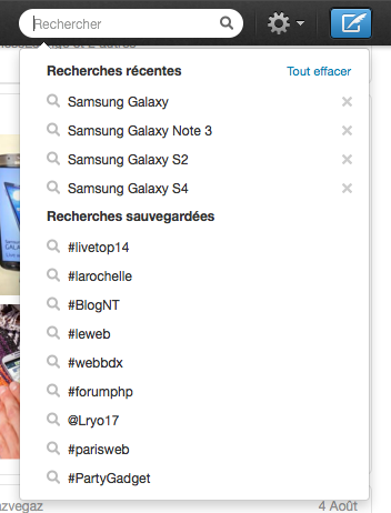 En cliquant sur une barre de recherche vide, vous avez désormais accès à la fois aux recherches récentes et aux recherches enregistrées.